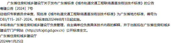 城市轨道交通工程联络通道冻结法技术标准收藏