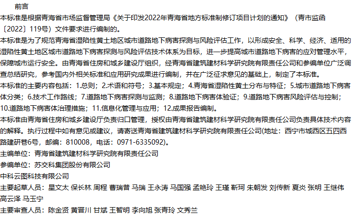 青海省湿陷性黄土地区城市道路地下病害探测与风险评估技术标准收藏