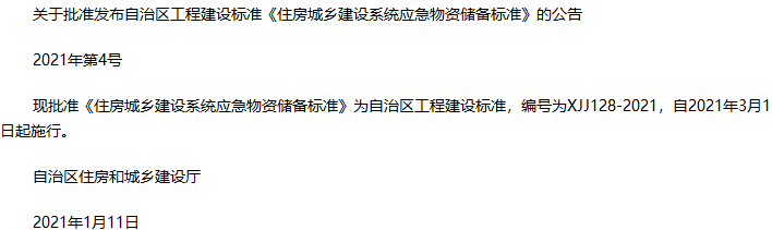 住房城乡建设系统应急物资储备标准收藏